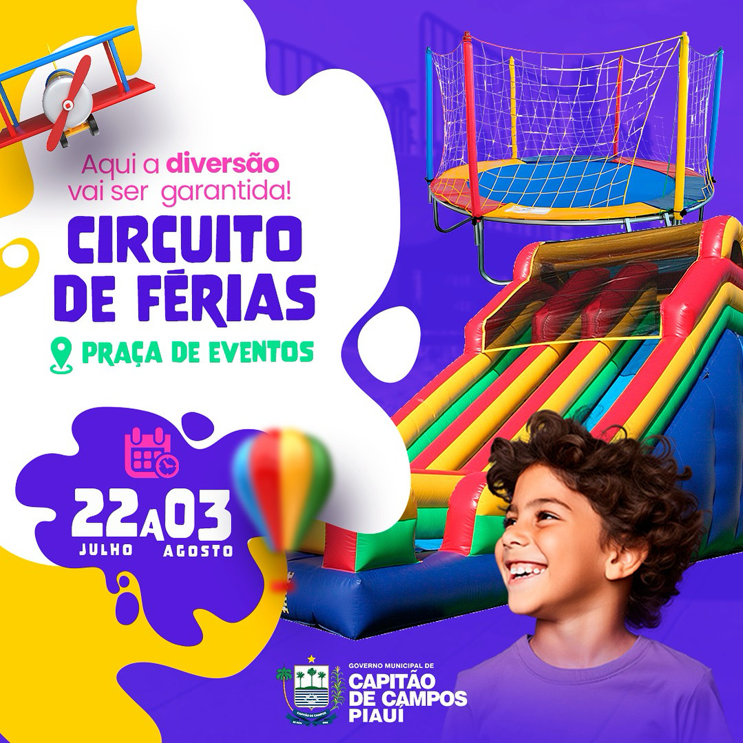 A Prefeitura de Capitão de Campos preparou uma programação especial para a criançada se divertir como nunca neste mês de julho! 🎈