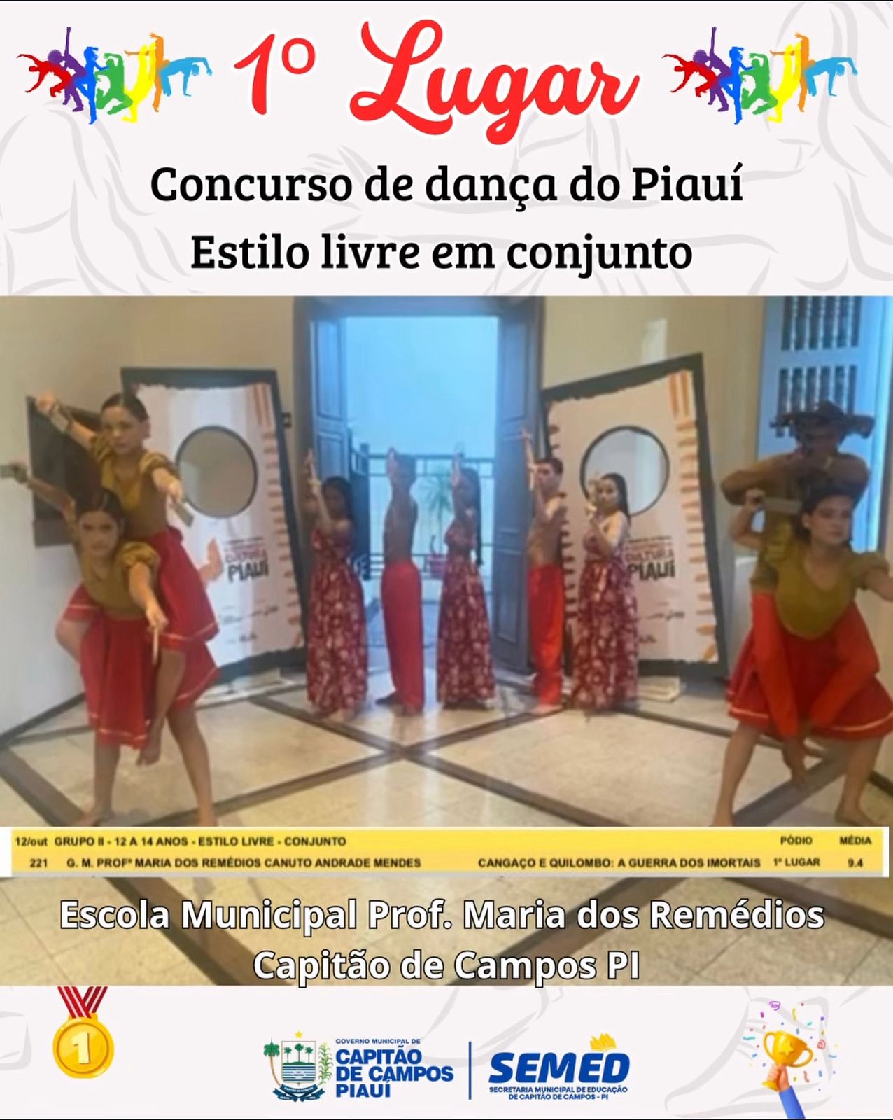 Os alunos da Escola Municipal Professora Maria dos Remédios fizeram história ao conquistar o primeiro lugar no Prêmio de Dança do Piauí 2025, na categoria Estilo Livre em Conjunto.